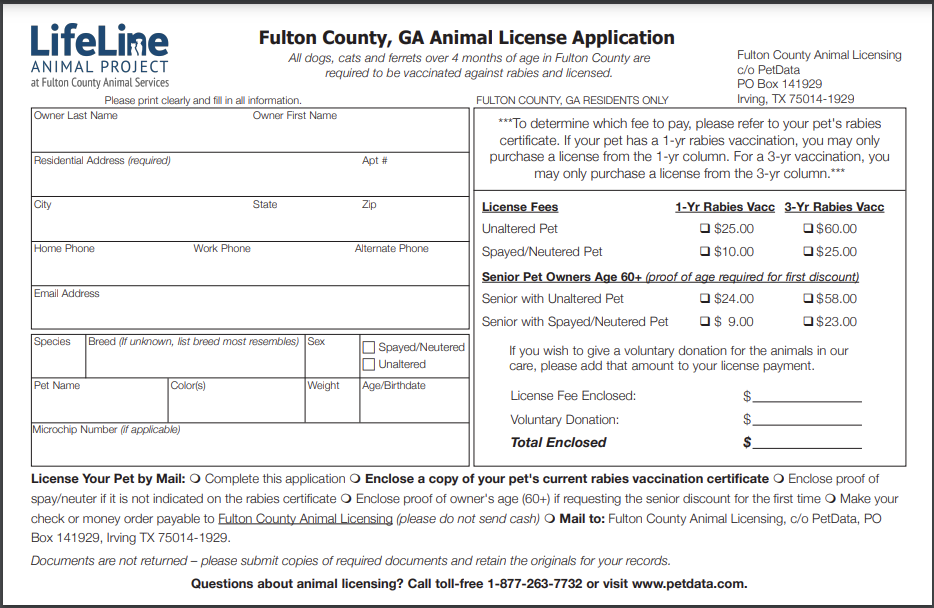 The specific requirements and costs for pet registration in Atlanta may vary, so it’s essential to check on the Fulton County Animal Services website for the most up-to-date information.